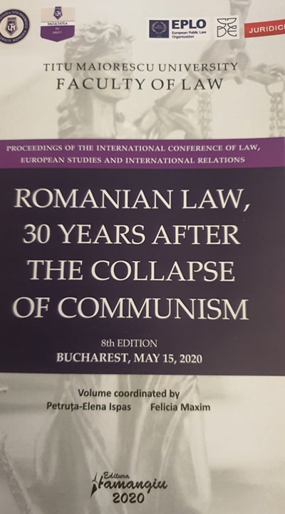 In perioada 15-16 mai 2020 a avut loca la Bucuresti Conferinta Internationala de Drept, Studii Europene si Relatii Internationale cu tema “ Dreptul romanesc la 30 de ani de la prabusirea comunismului”.