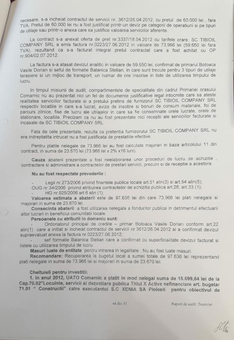 Falsuri si furturi grosolane din bani publici efectuate de Dorian Botoaca in perioada cand acesta s-a aflat la conducerea primariei Comarnic