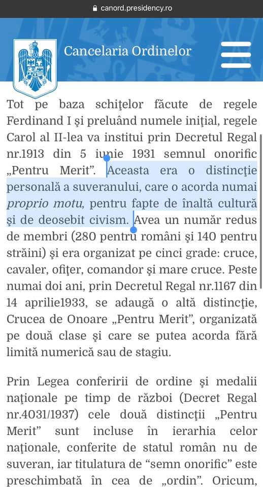 Problema e că decorarea domnișoarei de la detergent și beauty fara e facultate ilegală. N-are vechime în rezultate/ merite cu totul deosebite potrivit art 12 și 14 din regulamentul vieții Pentru Merit, mai dezvaluie Sorina Ruxandra Matei.