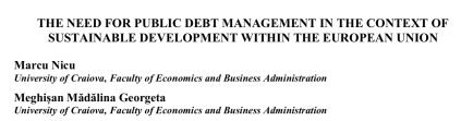 - Articol 2: ,,The need for Public Debt Management in the Context of Sustainable Development within the European Union”, este publicat în 2011 în Analele Universității din Oradea (non-ISI) și semnat co-autorat cu o colaboratoare de lungă durată a lui Nicu Marcu, Meghișan Georgeta-Mădălina.