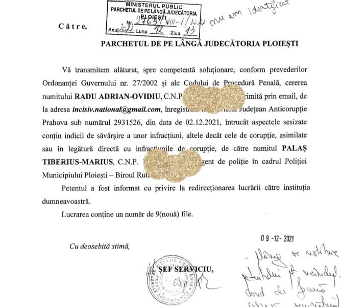 Incalcarea legilor Prelucrarii Datelor cu Caracter Personal de catre Prim Procurorul Maria Mirabela Viciu si de catre cei de la Parchetul de pe langa Judecatoria Ploiesti/Au savarsit aceeasi infractiune ca si agentul de politie PALAS TIBERIUS MARIUS/Ignoranţa e bezna minţii/SESIZAM PARCHETUL GENERAL – Ziarul Incisiv de Prahova