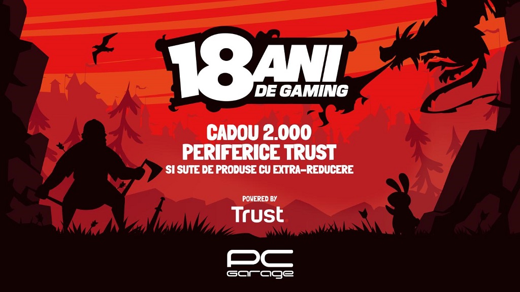 București, România – PC Garage, unul dintre cele mai mari magazine online de produse IT și electronice din România și în același timp un reper pentru toți cei pasionați de tehnologie, sărbătoreşte 18 ani de activitate oferind clienților periferice cadou de la TRUST, dar și super promoții pentru numeroase produse. Astfel, în perioada 16-18 octombrie 2023, clienții PC Garage vor avea super preţuri la anumite game de produse și pot primi gratis periferice de gaming TRUST.