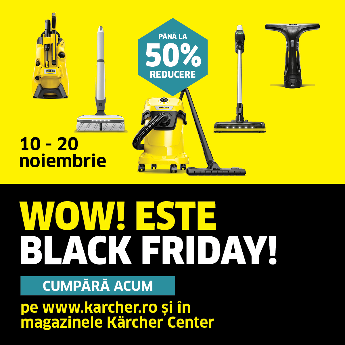 București, 8 noiembrie 2023 – Kärcher, lider mondial în domeniul tehnologiei de curățare, anunță desfășurarea campaniei de Black Friday în perioada 10 – 20 noiembrie, oferind reduceri semnificative, de până la 50%, transport gratuit și extinderea perioadei de retur la 30 de zile.