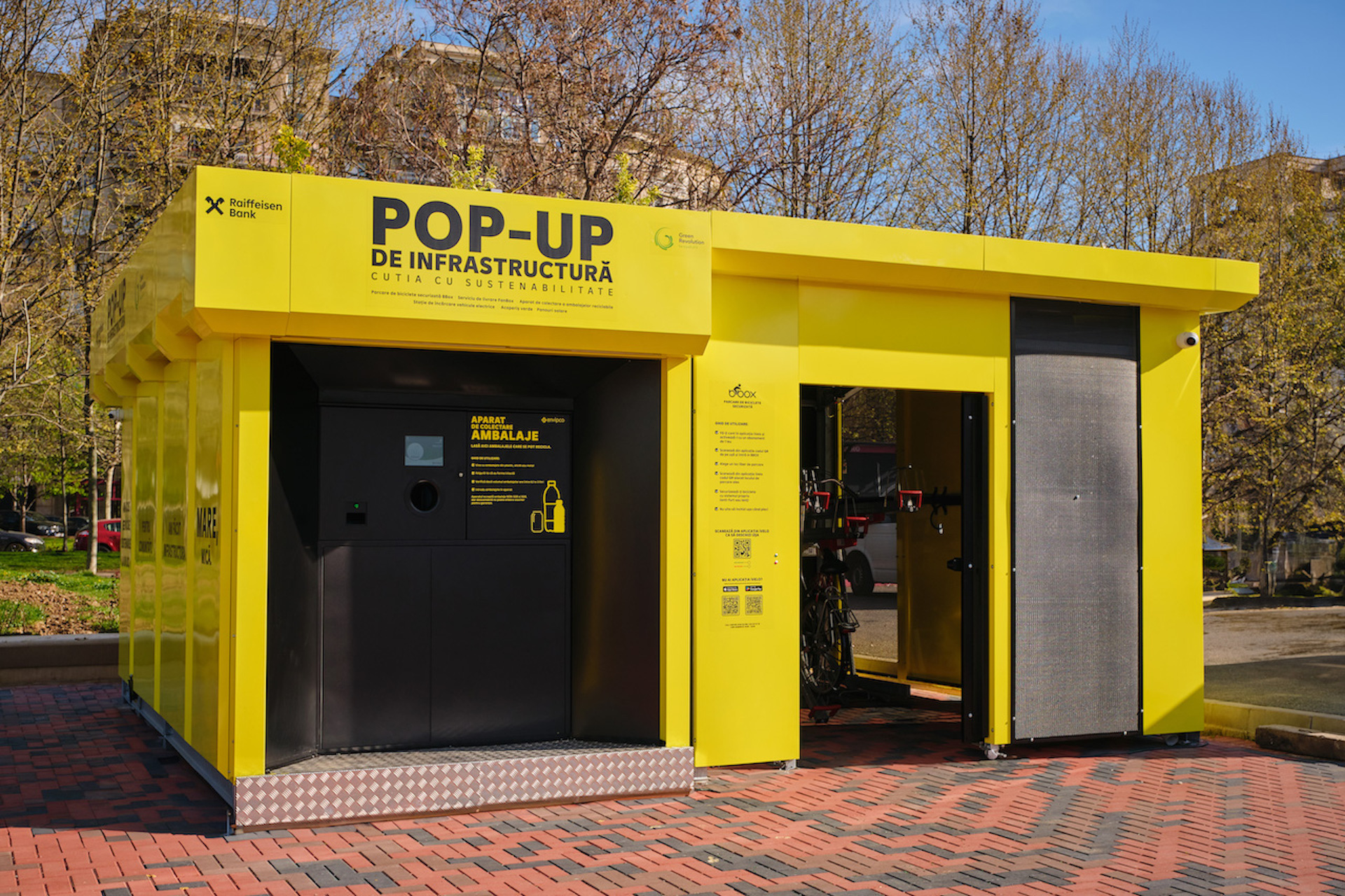 Primul Pop-up de acest gen, dezvoltat de Green Revolution, în parteneriat cu Raiffeisen Bank România și Mastercard România, a fost deja amplasat în sectorul 3, la intersecția Bulevardului Unirii cu Nerva Traian și are ca scop rezolvarea câtorva dintre problemele majore pe care le au oamenii din comunități atunci când vine vorba despre sustenabilitate și gestionarea resurselor.